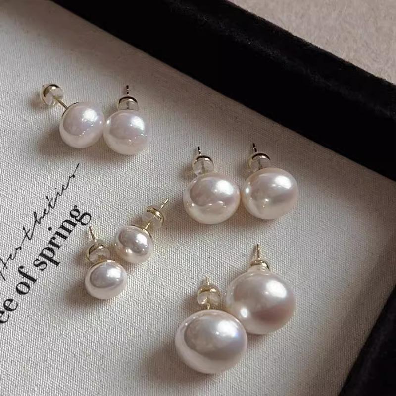 Shi Family Sakura Pink Breadnut Pearl Stud Earrings for Women, Pure Silver Pin Earrings, Ear Jewelry