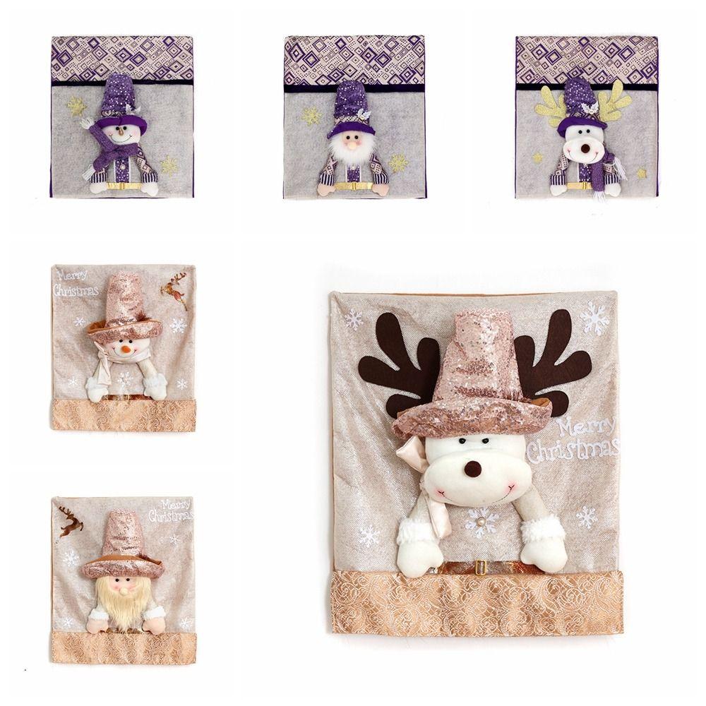 Cartoon Christmas Chair Cover Soft Removable Seat Protector Purple Glitter Christmas Table Decor New Year Supplies