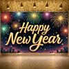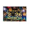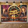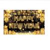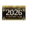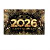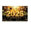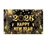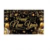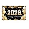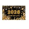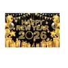 Black Gold 2026 New Year Backdrops Polyester Night Glittering Party Background Colorful Balloon Champagne Photo Background