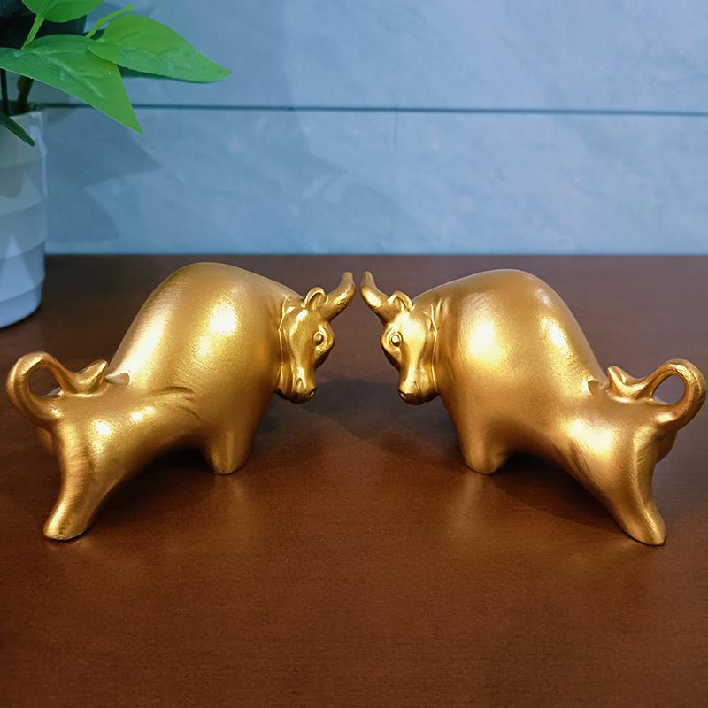 2 шт. Золотой Бык Уолл-стрит Рынок Быков Смоляные Украшения Фэн-шуй Статуэтка Удачи Фигурки Богатства Для Офисного Интерьера Настольный Декор — купить товар онлайн с бесплатной доставкой по всему миру!