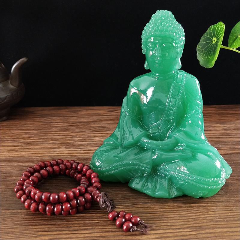 Статуэтка Будды с ожерельем-украшением Счастливый Фэн-шуй Медитация Скульптура Будды Искусственный Нефритовый Камень Украшение для дома и офиса Подарок