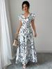 Весна и лето новая сексуальная облегающая тонкая длинная юбка-платье с принтом и V-образным вырезом с отделкой в виде края листа лотоса