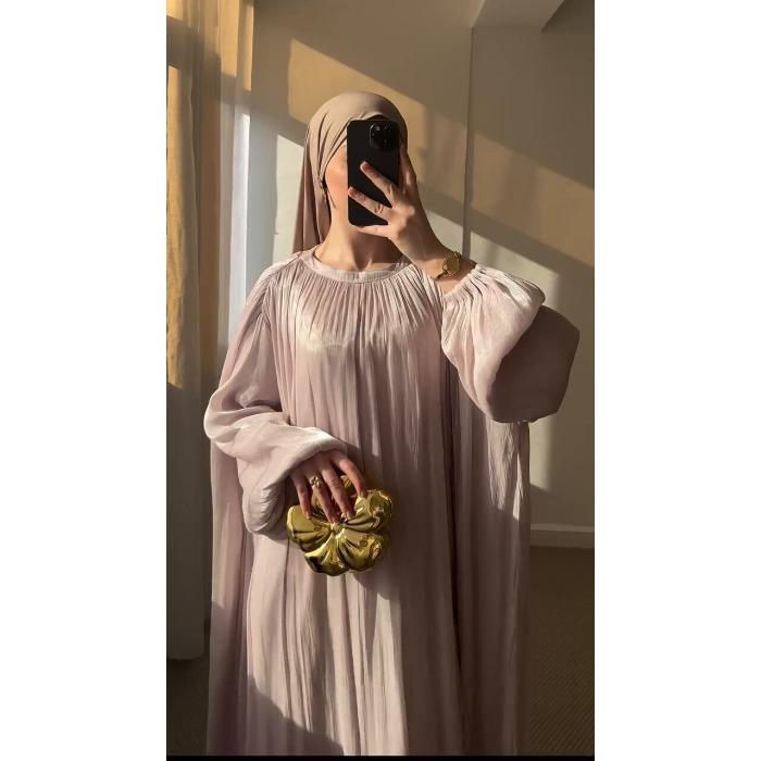 Арабский Женский Год Ближнего Востока Весна Новая Мода Темперамент Мерсеризованное Свободное Платье с Рукавами-Пузырями Длинное