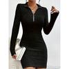 Европа и США желают независимой станции осенне-зимнюю женскую одежду с отложным воротником, на молнии, с поясом, с длинным рукавом, вязаное платье-футляр