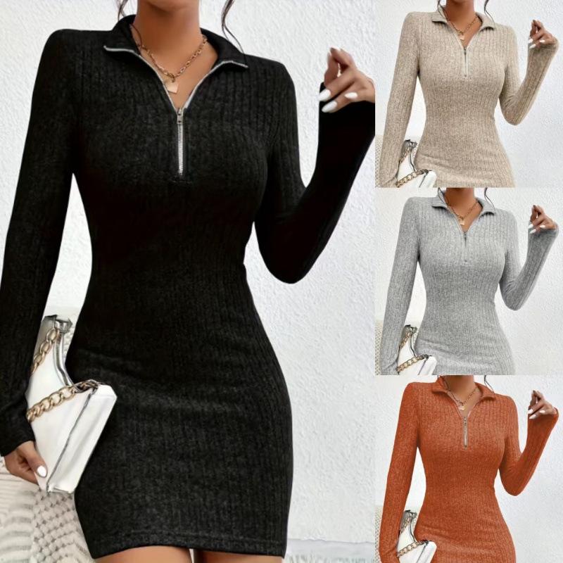 Европа и США желают независимой станции осенне-зимнюю женскую одежду с отложным воротником, на молнии, с поясом, с длинным рукавом, вязаное платье-футляр — купить товар онлайн с бесплатной доставкой по всему миру!