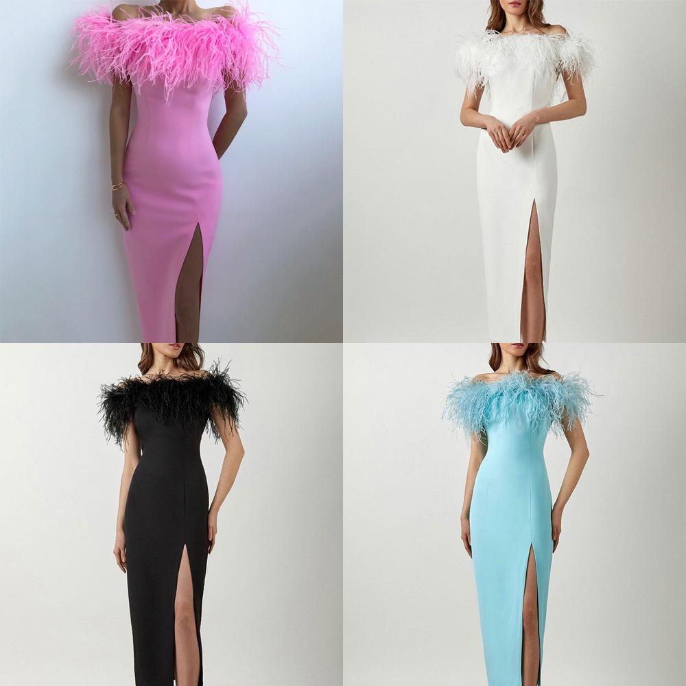 Весна и лето новая европейская и американская женская одежда платье с открытыми плечами вечернее платье с перьями платье для светского раута элегантное длинное платье — купить товар онлайн с бесплатной доставкой по всему миру!