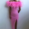 Весна и лето новая европейская и американская женская одежда платье с открытыми плечами вечернее платье с перьями платье для светского раута элегантное длинное платье