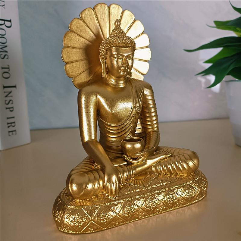 Золотые статуи Будды Шакьямуни, статуэтки, украшения, изделия из смолы, скульптура Будды для медитации в стиле фэн-шуй, украшение для дома и офиса — купить товар онлайн с бесплатной доставкой по всему миру!