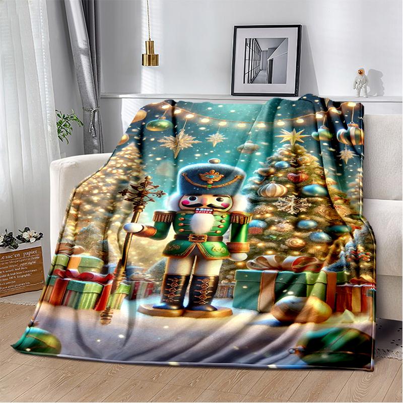 Cartoon Merry Christmas Gift The Nutcracker Doll Happy New Year Soft Flannel Blanket for Beds Bedroom Sofa Picnic,Throw Blanket