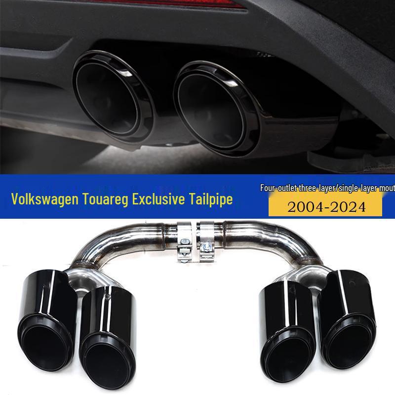 Enhanced Quad-Outlet Exhaust Pipe for 2004-2024 Volkswagen Touareg, Triple-Layer Single-Tip Design
