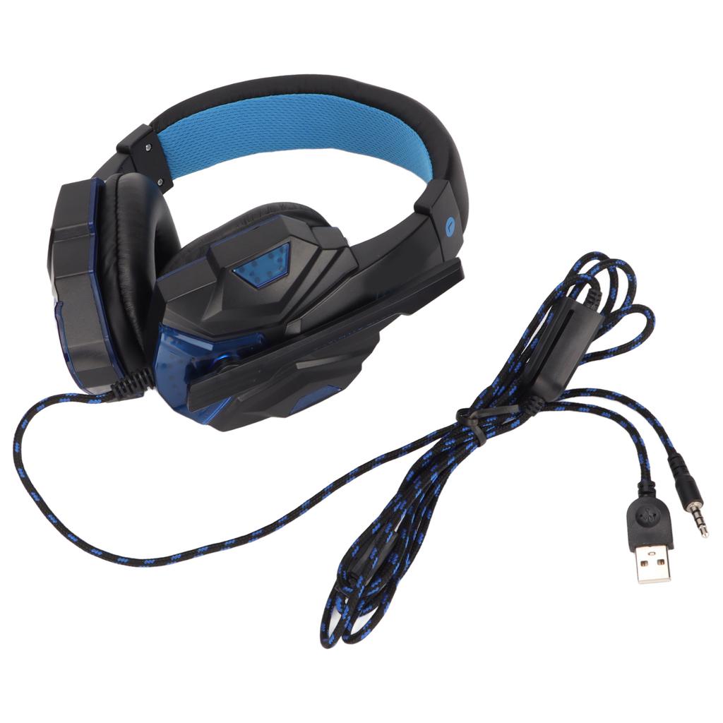 SY830MV Game Headsets Volume Support Mic USB Headsets with 3.5mm Microphone for PC Laptop(Black Blue )