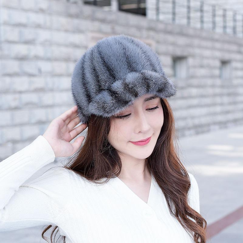 Норковая шапка женская осень и зима норковый мех мех норки модная трендовая норковая шапка универсальная бейсболка-рыцарь