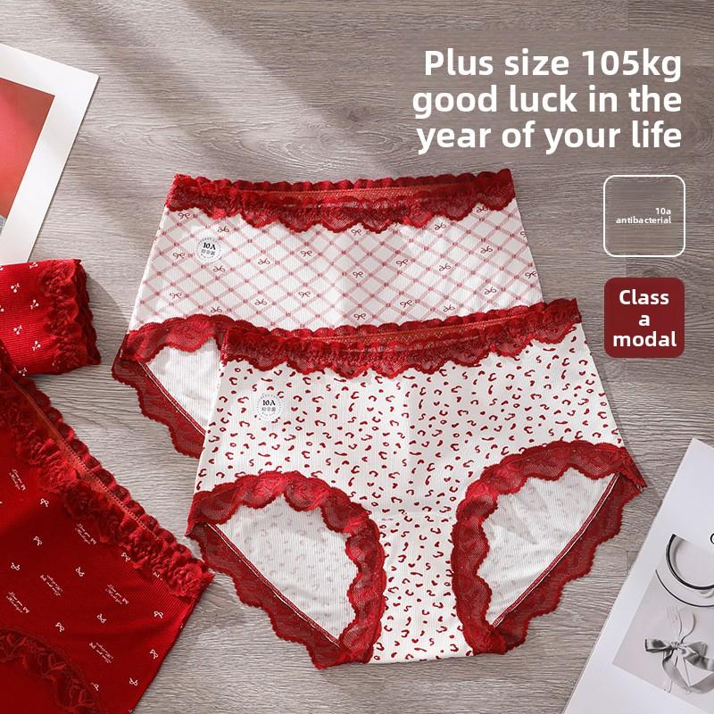 Большой Размер Женское Весна Лето Брак В Этом Году Красное Кружево 10a Антибактериальные Трусики-Слипы с Удлиненной Промежностью