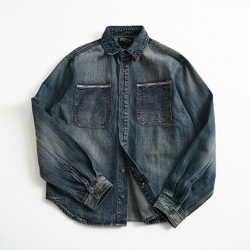 American Retro Heavy Weight Parka Denim Shirt Jacket Bandage Dress Inner Wear Men Long Sleeves Autumn and Winter Foreign Trade Men's Shirt