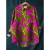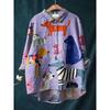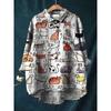 Женская повседневная свободная рубашка на пуговицах с цветочным принтом - Узор 'Косяк рыб'