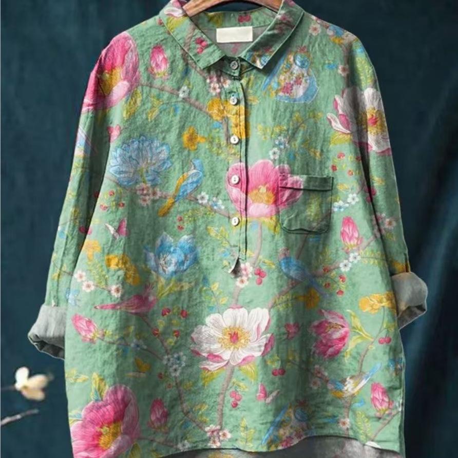 Женская повседневная свободная рубашка на пуговицах с цветочным принтом - Узор 'Косяк рыб' — купить товар онлайн с бесплатной доставкой по всему миру!