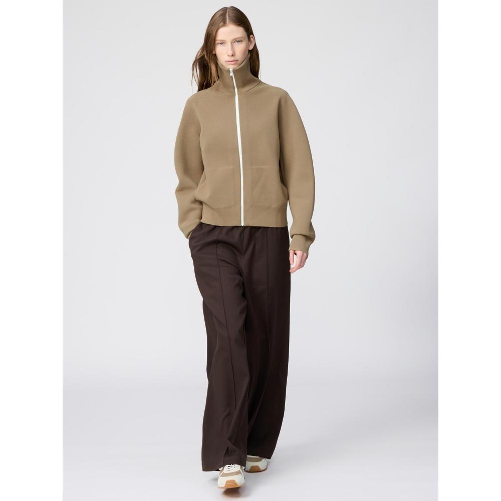 Кардиган UNIQLO на молнии с фактурой «миланская резинка», который можно стирать, имеет удобный, свободный силуэт.. Оно непрозрачное и имеет свободный крой, что подходит для различных вариантов стиля.. Кардиган оснащен карманами, что повышает его практичность.
