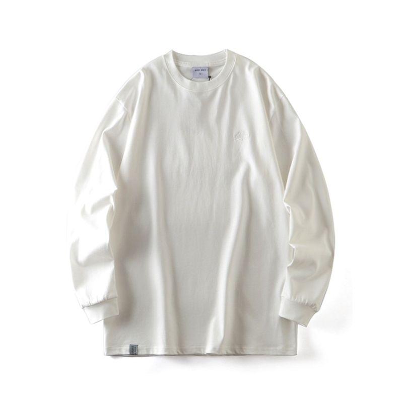 American Retro Heavy Weight Pure Cotton Shoulder Embroider White Long Sleeve T-shirt Men's Autumn and Winter Undershirt Export Cotton T-shirt