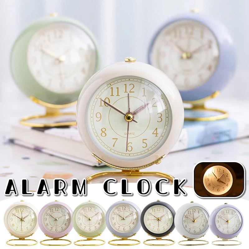 1PC Retro Alarm Clock Digital Quartz Clock Home Decorations Portable Compact Silent Clock Metal Stand Desktop Decor New