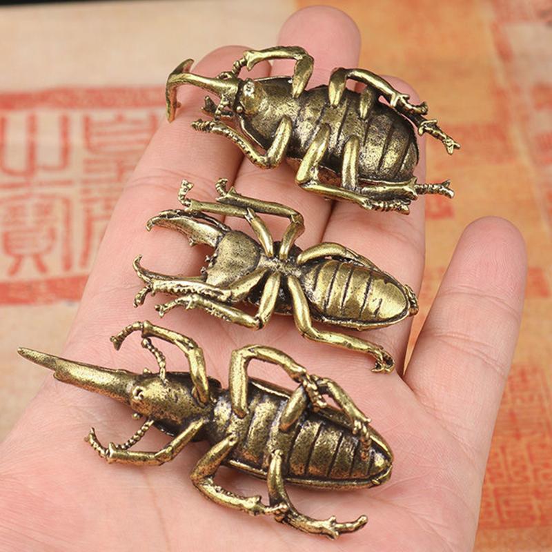 Ручная работа Декорация Жук Литье под давлением Гравировка Ретро Латунь Интересная Блестящая Игрушка-Насекомое Креативный Детский Подарок Коллекционные Предметы