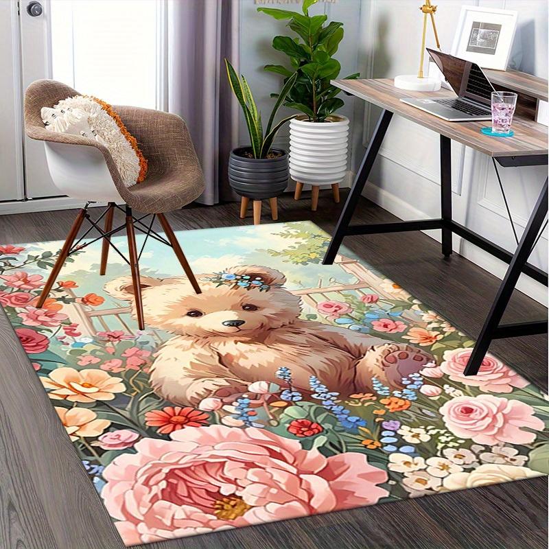 Office Carpet Cute Teddy Bear with Flowers Sofa Rug, Chair Mat Protection