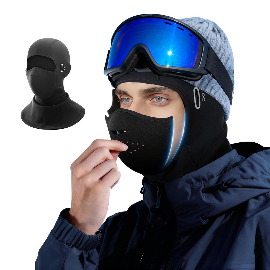 360° защита для комфорта в сильные морозы! Многофункциональный дизайн 4-в-1: Эта балаклава сочетает в себе шапку, наушники, маску и эластичный шарф-воротник для полной защиты. Он бесшовным образом обволакивает ваше лицо и голову, защищая от метелей, сильного ветра и пыли.. Ветронепроницаемый, водоотталкивающий внешний слой и мягкая, ворсистая внутренняя подкладка защищают от холодного воздуха, сохраняя тепло вашего тела, обеспечивая исключительное тепло даже при отрицательных температурах.. Это идеально подходит для катания на лыжах, сноуборде, езды на велосипеде и верховой езды.