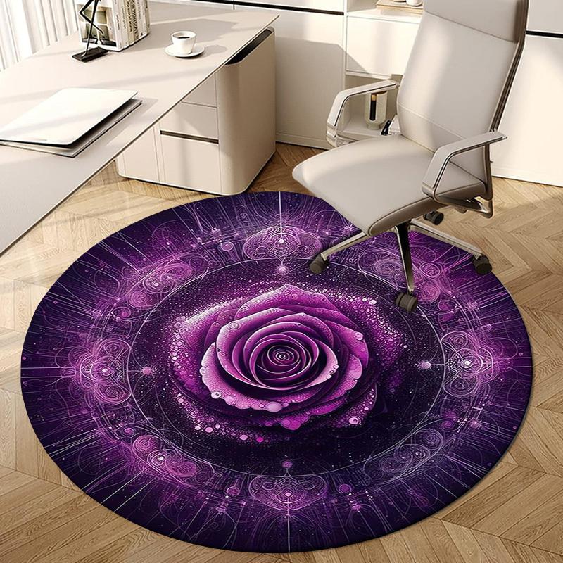 1pc Office Carpet Chair Mats Purple Rose Mandala Artwork Perfect for Decorating Office Chairs, Living Rooms, Or Bedrooms