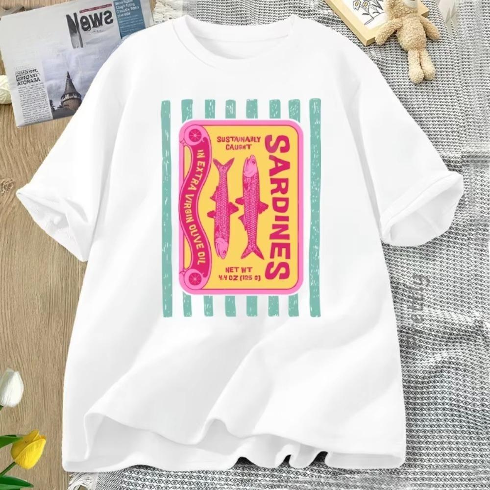 Графичная футболка с сардинами Ретро футболка для гурманов Футболка с принтом консервированной рыбы Летняя футболка в морском стиле Футболка рыбака Одежда для мужчин и женщин