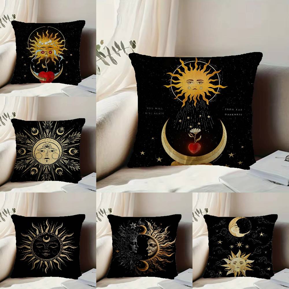 Sun Moon Mandala Series Pattern Pillow Case Anti-dustmite Pillowcase Invisible zipper silky short plush Sofa cushion cover