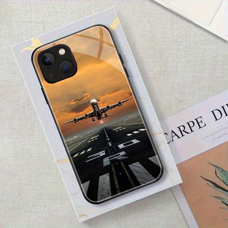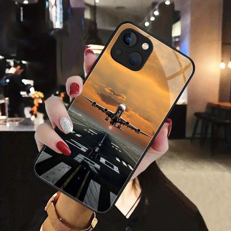 Airplane Festival Dazzling Print Glass Phone Case For iPhone 16 17 Pro Max 11 12 13 14 15 Pro 16E 17Air 7 8 Plus XR XS X Cover