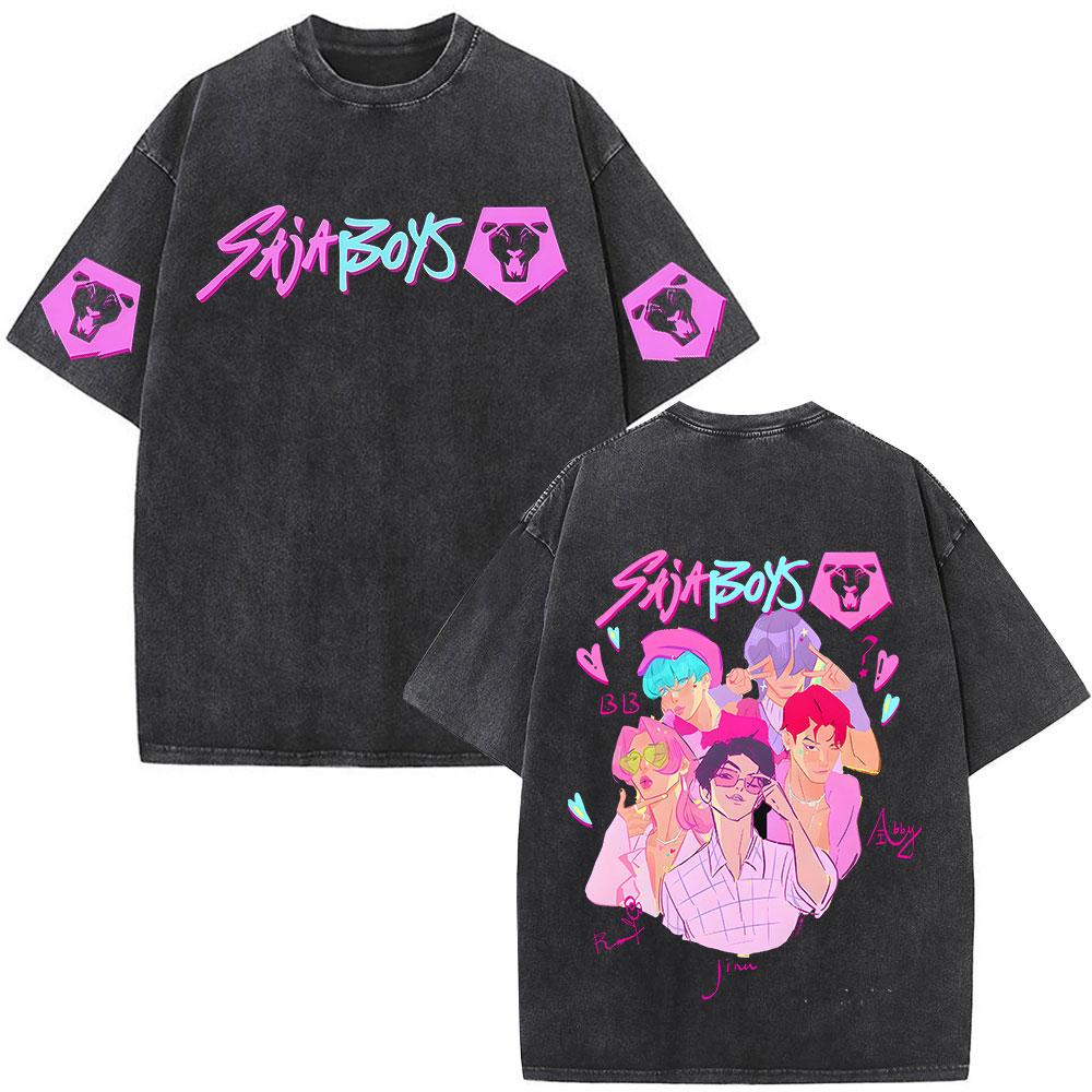 KPop Demon Hunters Vintage Washed T-shirts Rumi Mira Zoey Cartoon T-shirt Men Women Casual TShirt O-collar Halloween Tee — купить товар онлайн с бесплатной доставкой по всему миру!
