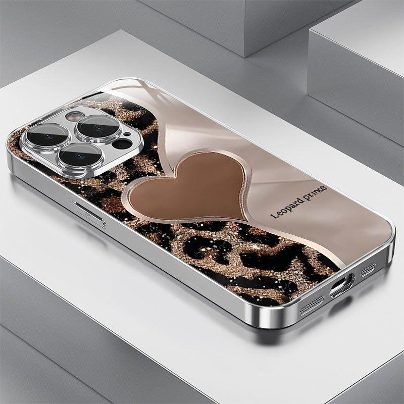 Креативный чехол для телефона с принтом сердца и леопарда, комбинированный, гальванизированный, для Samsung Galaxy S25 S24 S23 Ultra Plus FE, закаленное стекло