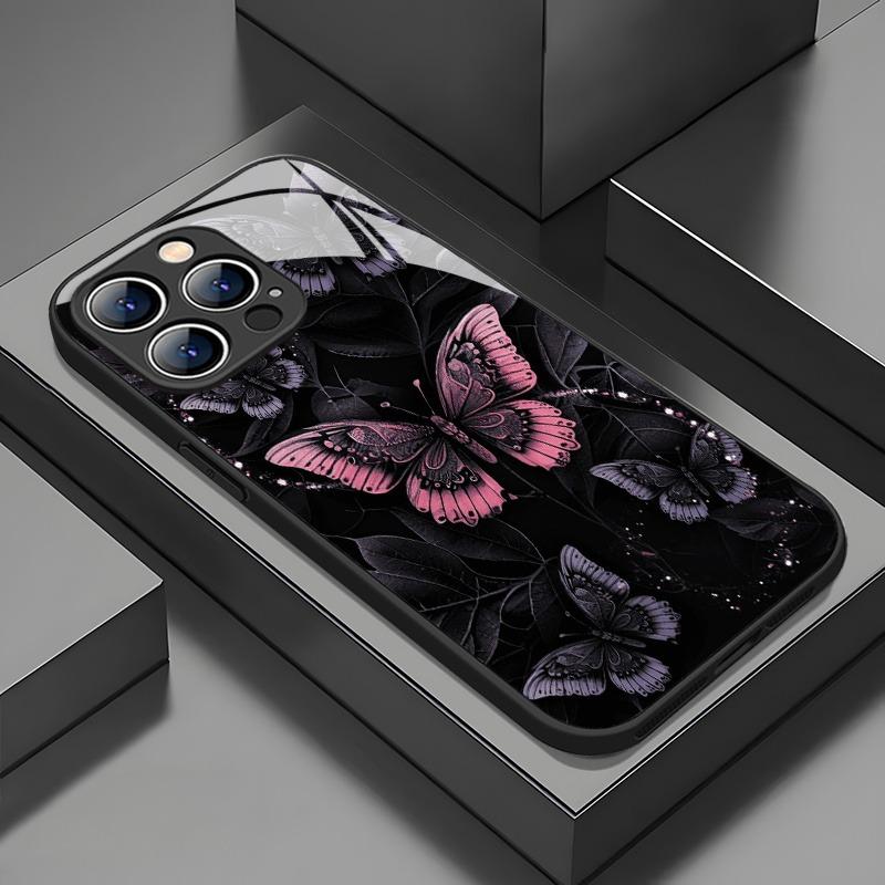 Ретро Чехол из закаленного стекла с узором из темных бабочек для iPhone 11 12 13 14 15 16 17 Pro Max 17Air 16E 7 8 Plus XR XS X