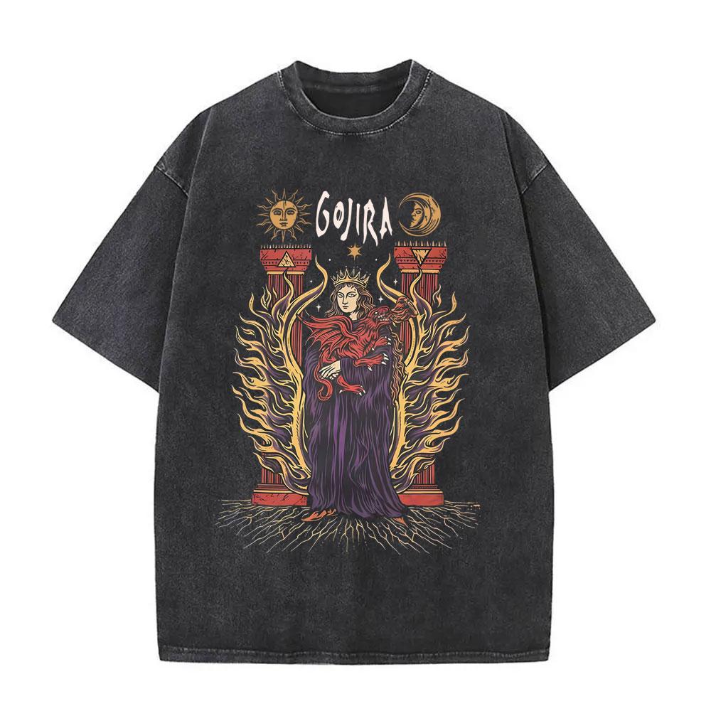 Стирка Винтажная Металлическая Рок-группа Годзилла Футболка Магма Футболка Фортитуда Футболки Мужские Женские Мода Оверсайз Футболки Уличная Мода