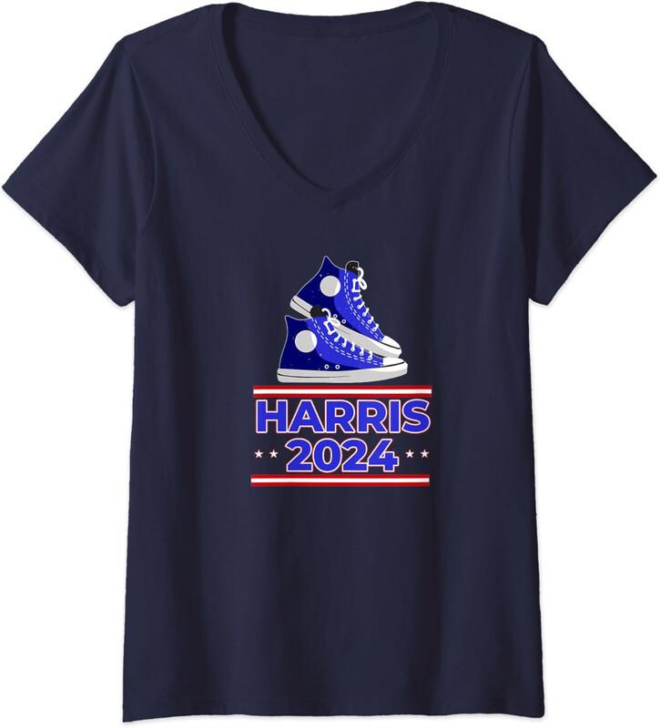 HARRIS 2024 Vote President Kamala Funny Sneakers Ladies' V-Neck Tshirt Unisex T-Shirt — купить товар онлайн с бесплатной доставкой по всему миру!