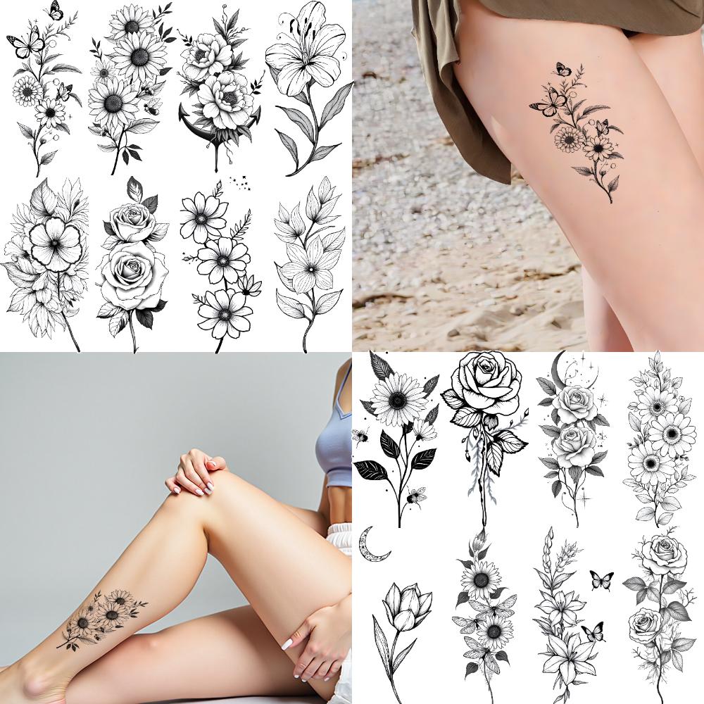 12 шт. Временные татуировки Цветочные узоры Водонепроницаемые Долговечные Наклейки на тело Для бедер Женские Взрослые
