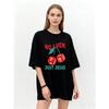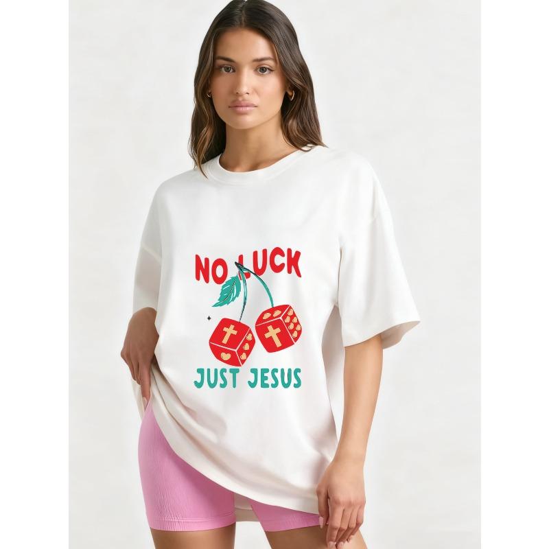 Футболка оверсайз черная Не удача, а только Иисус Вишня кости Принт креста Графическая футболка Повседневная уличная мода Женский топ Летний наряд
