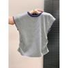 Женский фиолетовый полосатый вязаный топ с круглым вырезом, коротким рукавом, боковыми сборками, повседневный, облегающего кроя, блузка