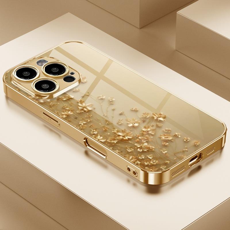 Элегантный Золотой Цветок Золотая Металлическая Краска Стеклянный Чехол Для Телефона Для iPhone 17 16 15 14 13 12 11 Pro Max 15 14 Plus 17 Air 16E Чехол