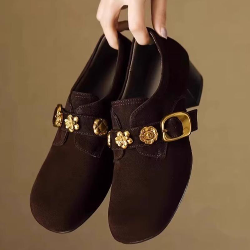 Металлическая Пряжка Блок Каблук Однотонная Обувь Мода Квадратный Носок Глубокий Вырез Замша Нескользящая Износостойкая Каблуки-Киттен