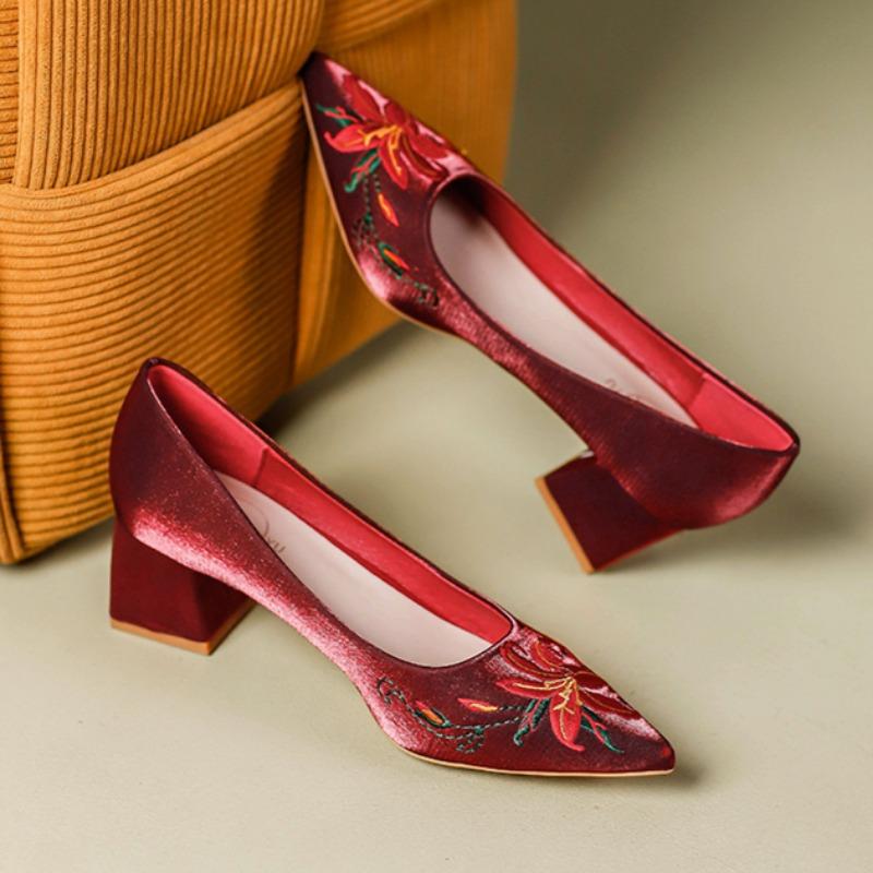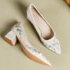 Туфли на толстом каблуке Весна Новые туфли с заостренным носком и вышитым шелковым носком Нескользящие износостойкие туфли на высоком каблуке