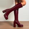 Водонепроницаемые высокие сапоги из лакированной кожи, модные, с квадратным носком, на платформе, с противоскользящей подошвой, на блочном каблуке, туфли