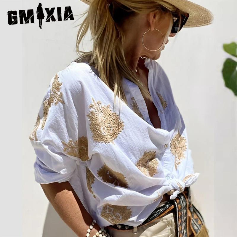 GMXIA Женские модные повседневные блузки и рубашки с длинным рукавом