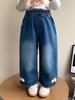 MQDMINI Girls' Rabbit Flip-Cuff Straight-Leg Jeans