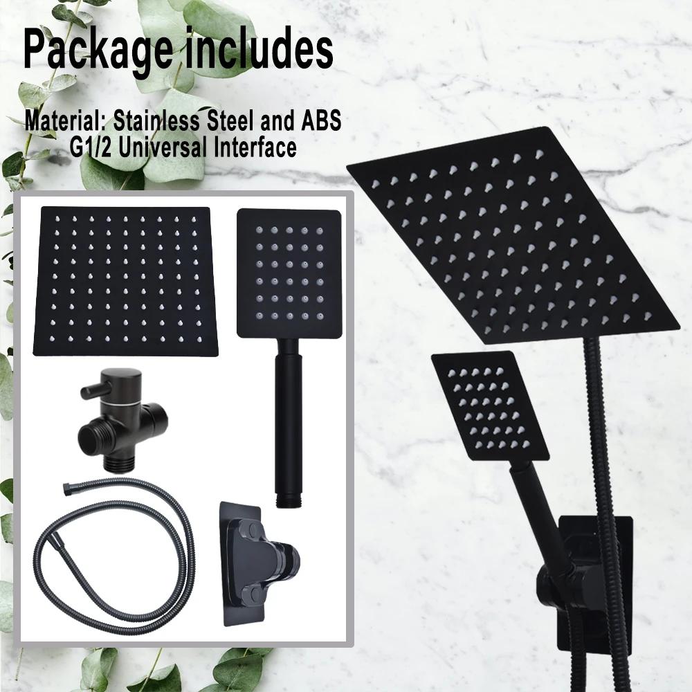 High Pressure Square 8 Inch Rain Shower Head Shower Accessorie Bathroom Top Shower Head Set Black Handheld Shower Spray