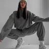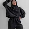 Женский флисовый костюм, свободная толстовка с длинным рукавом и брюки с высокой талией, комплект из 2 предметов, женский зимний модный теплый спортивный костюм 2024 года