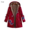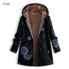 Зимнее пальто с капюшоном и принтом листьев, теплое, плотное, с длинным рукавом, повседневная верхняя одежда, женское, ретро, национальный стиль