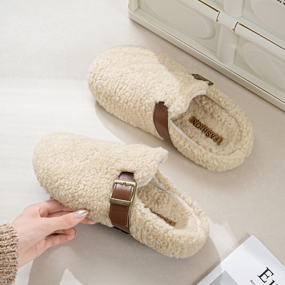 Роскошные меховые тапочки из овечьей шерсти Женские mules с закрытым носком Зимние шлепанцы Домашние Pantuflas Mujer Лоферы из кудрявой шерсти — купить товар онлайн с бесплатной доставкой по всему миру!