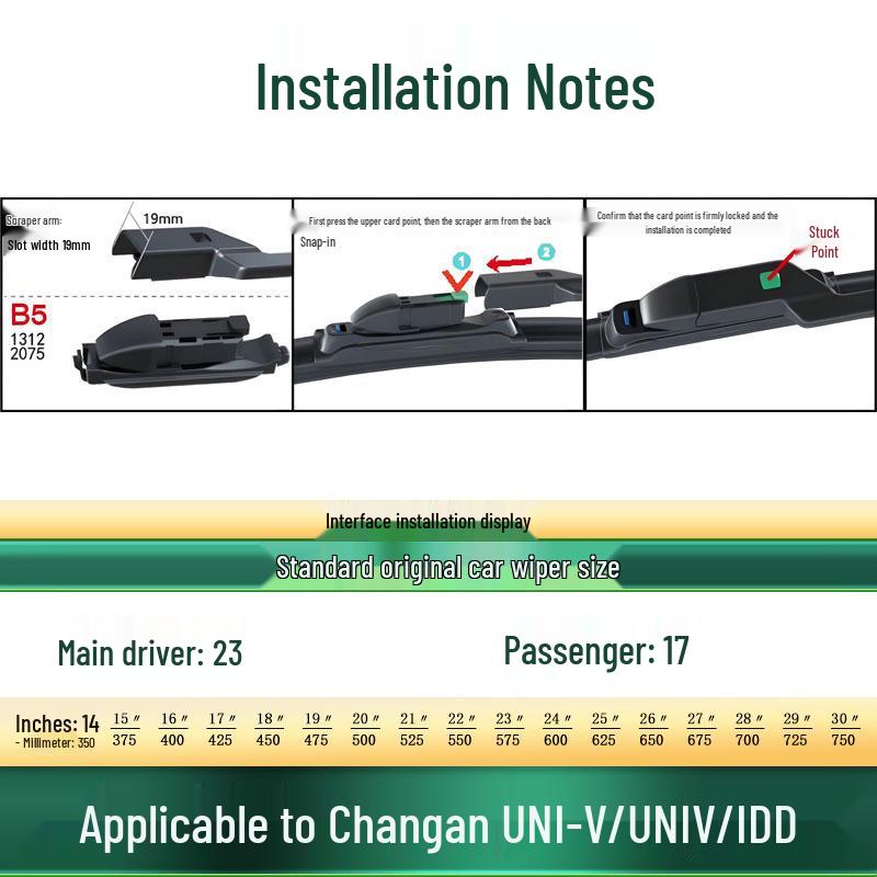 Frameless Silent Wiper Blade for Changan UNI-V and IDD Cars