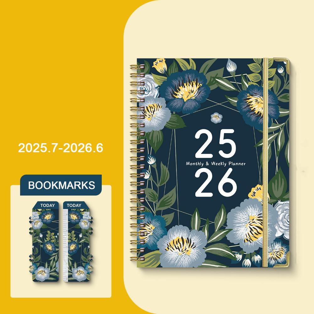 12 Months A5 Agenda Book Colorful Flower Pattern To Do List Schedule Planner Notepad Taking Notes Portable Binder Coil Notebook